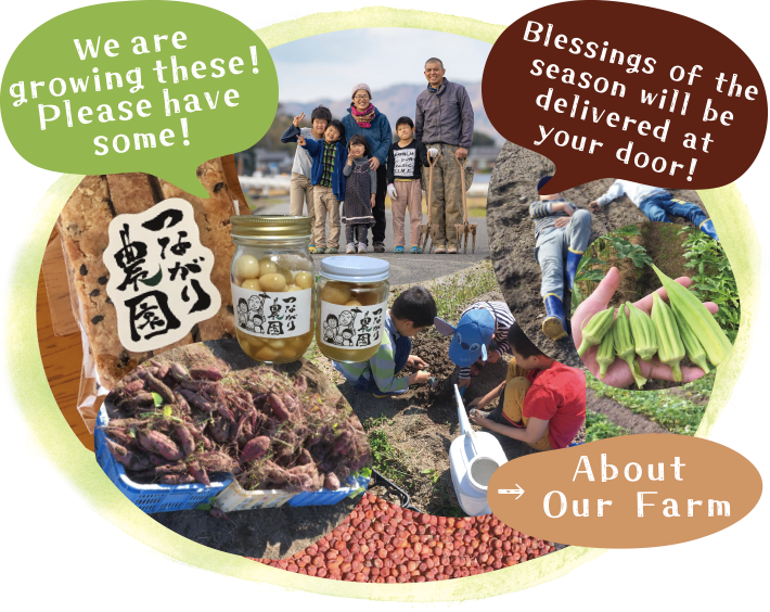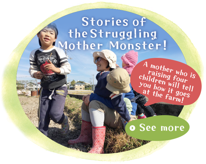 I am the Mom of the farm, Toshie Tsuji. I farm with my husband and our four kiddie monsters. I will show you our farm's very special features.